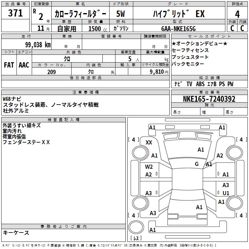 TOYOTA COROLLA FIELDER - лот 371