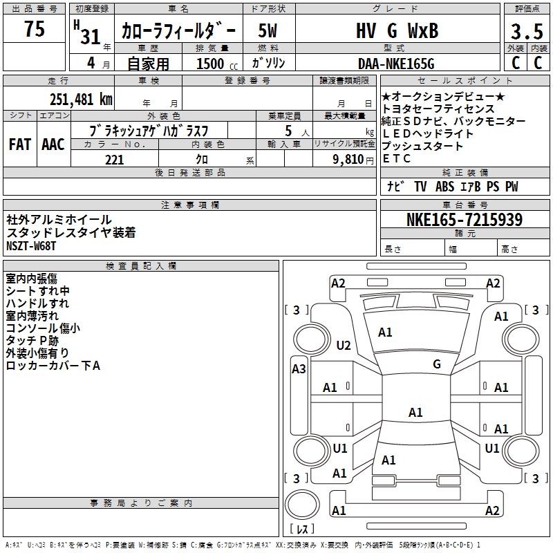TOYOTA COROLLA FIELDER - лот 75