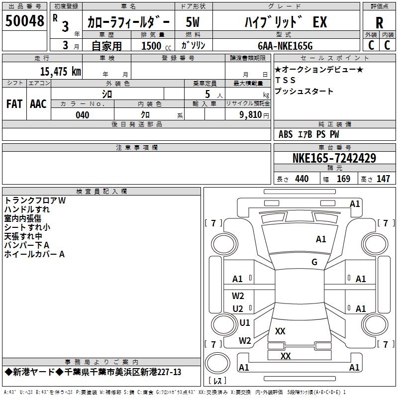 TOYOTA COROLLA FIELDER - лот 50048