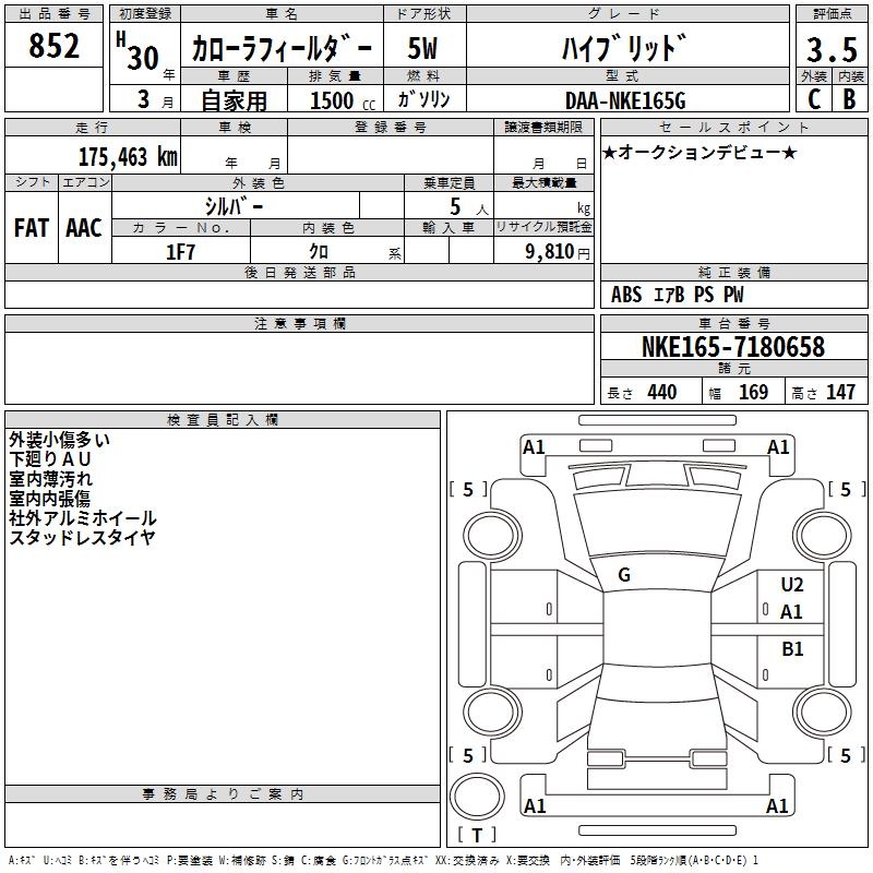 TOYOTA COROLLA FIELDER - лот 852