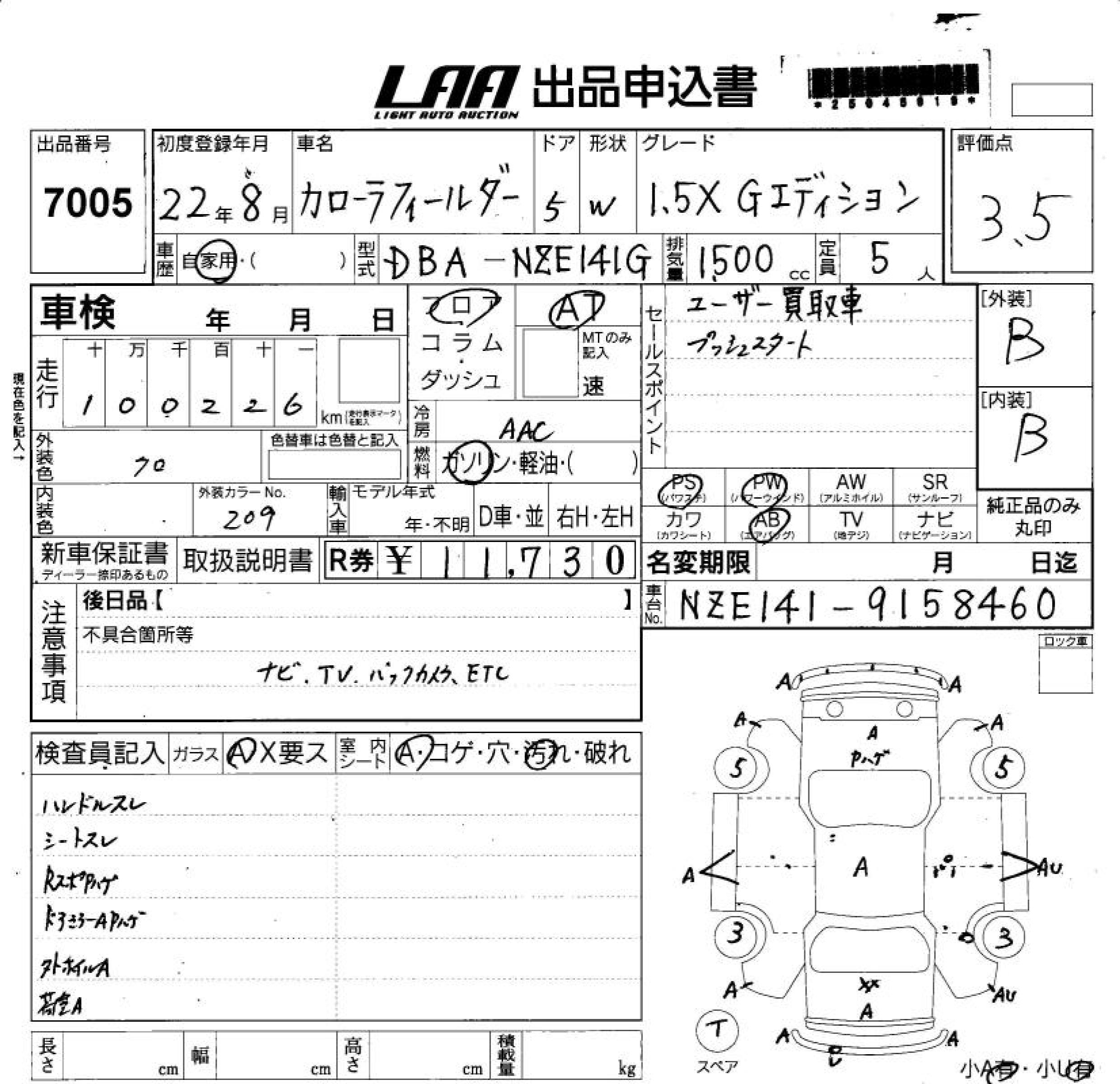 TOYOTA COROLLA FIELDER - лот 7005