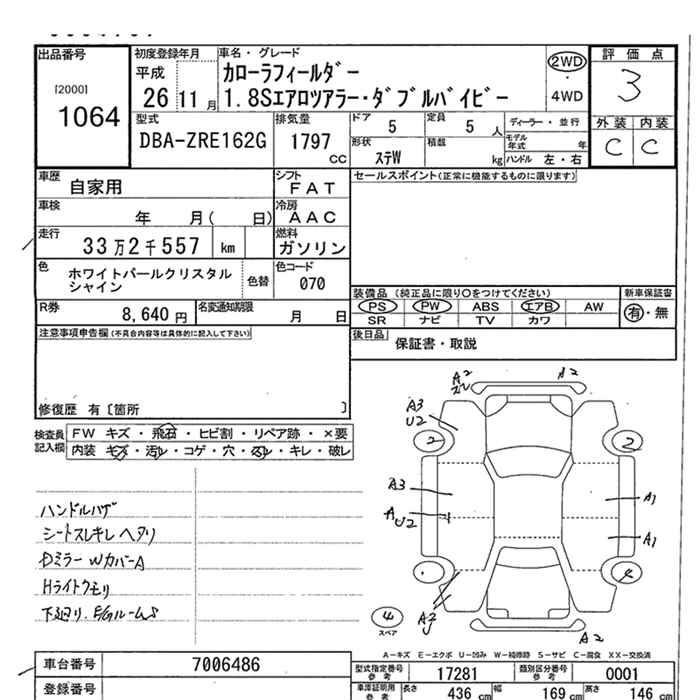 TOYOTA COROLLA FIELDER - лот 1064