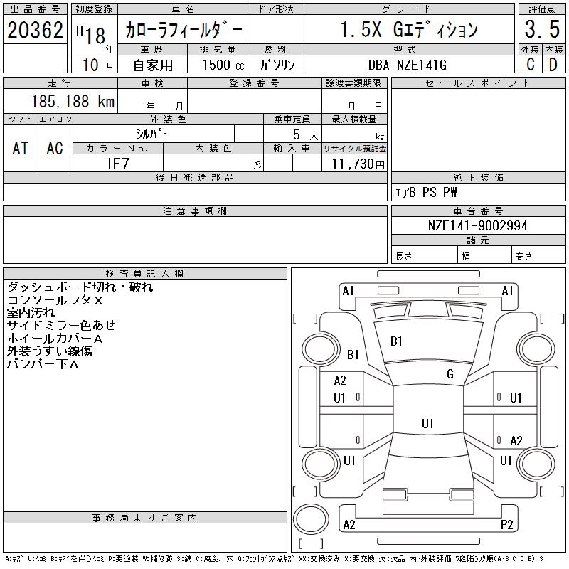 TOYOTA COROLLA FIELDER - лот 20362
