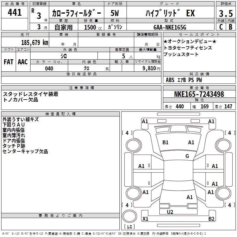 TOYOTA COROLLA FIELDER - лот 441