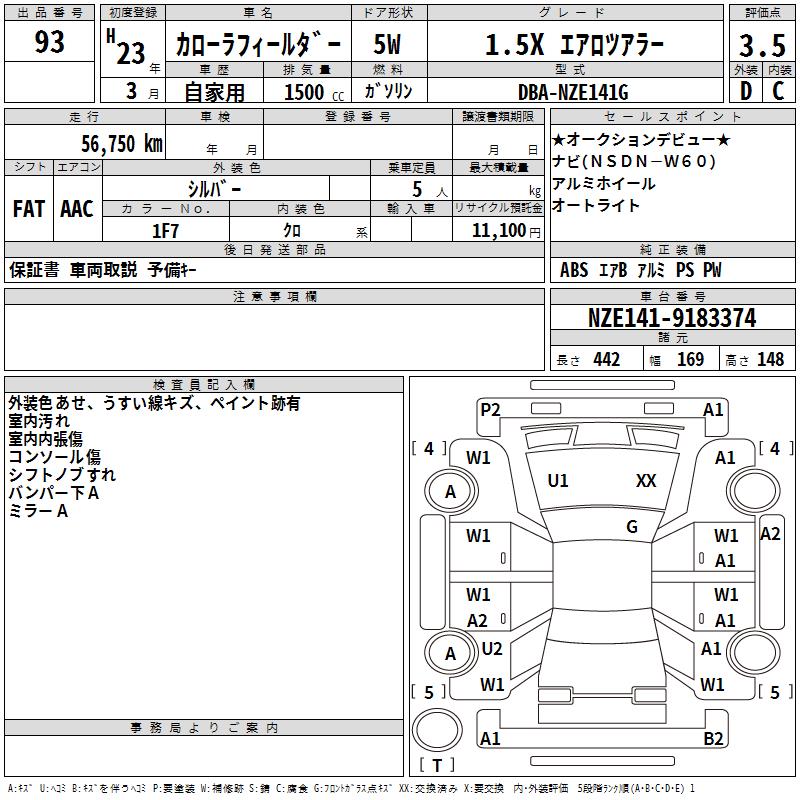 TOYOTA COROLLA FIELDER - лот 93