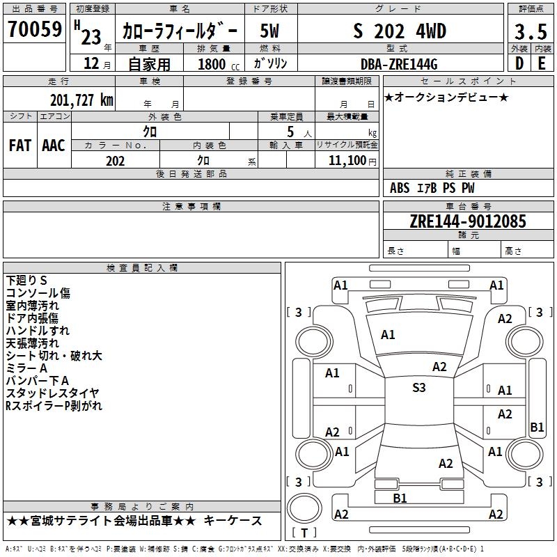 TOYOTA COROLLA FIELDER - лот 70059