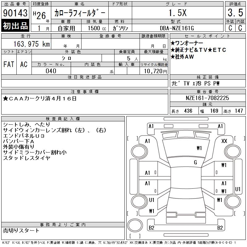 TOYOTA COROLLA FIELDER - лот 90143