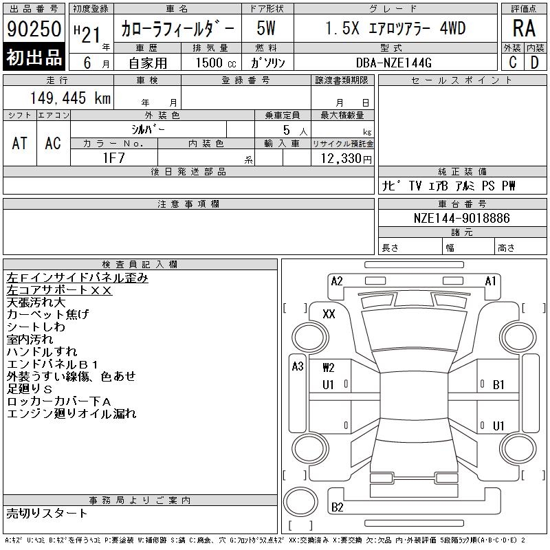 TOYOTA COROLLA FIELDER - лот 90250