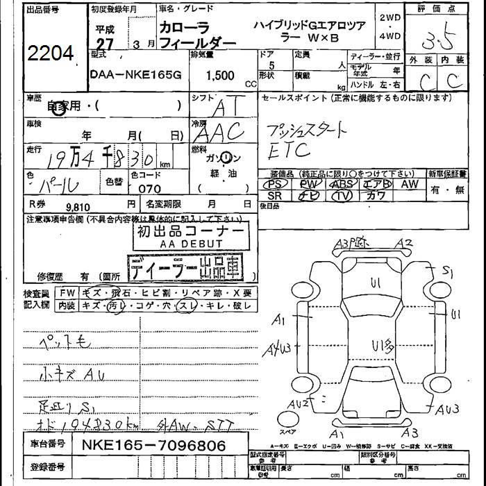 TOYOTA COROLLA FIELDER - лот 2204