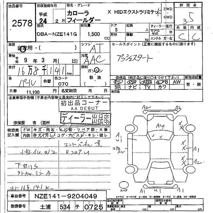 TOYOTA COROLLA FIELDER - лот 2578
