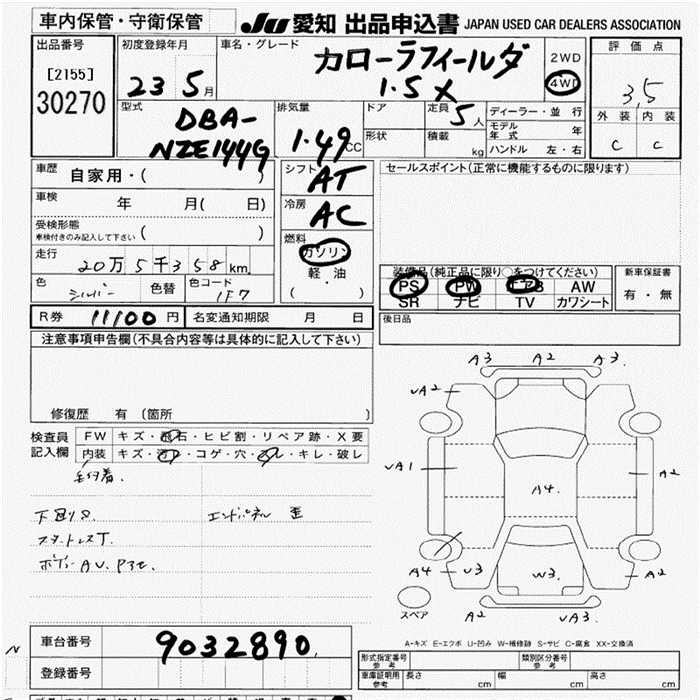 TOYOTA COROLLA FIELDER - лот 30270