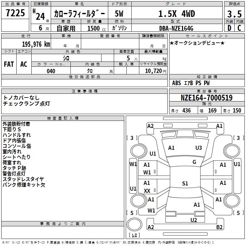 TOYOTA COROLLA FIELDER - лот 7225