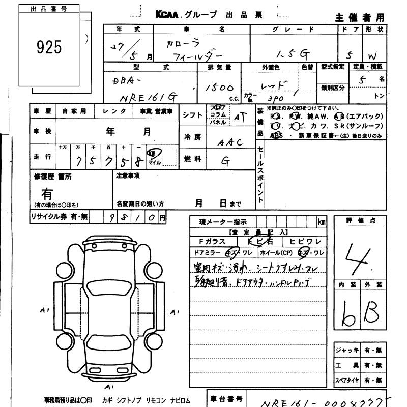 TOYOTA COROLLA FIELDER - лот 925
