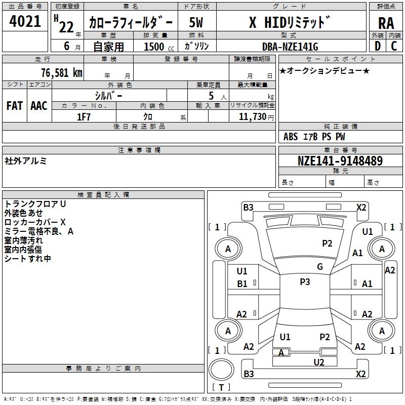 TOYOTA COROLLA FIELDER - лот 4021