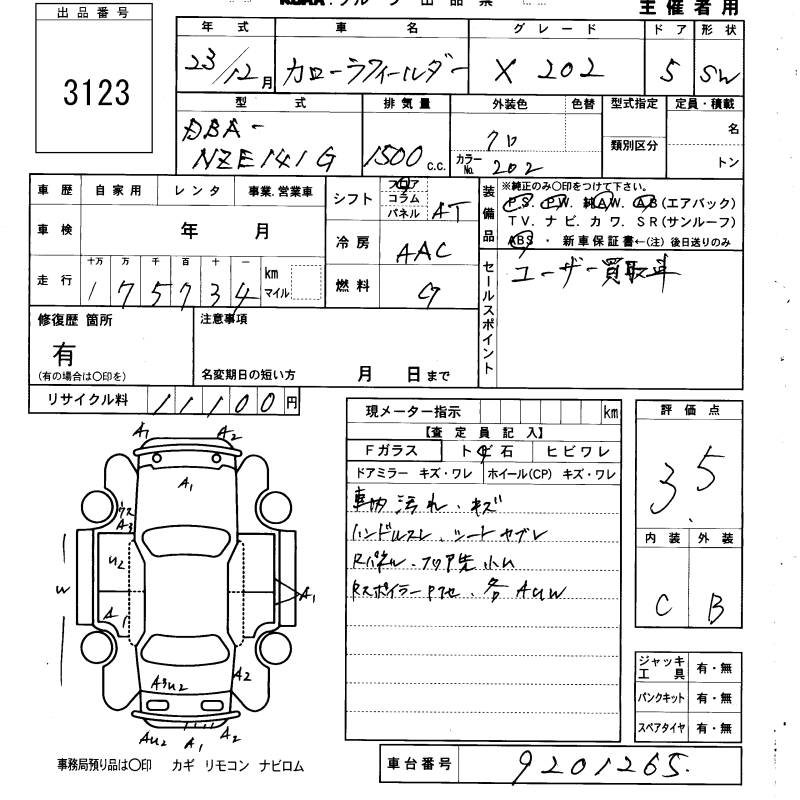 TOYOTA COROLLA FIELDER - лот 3123