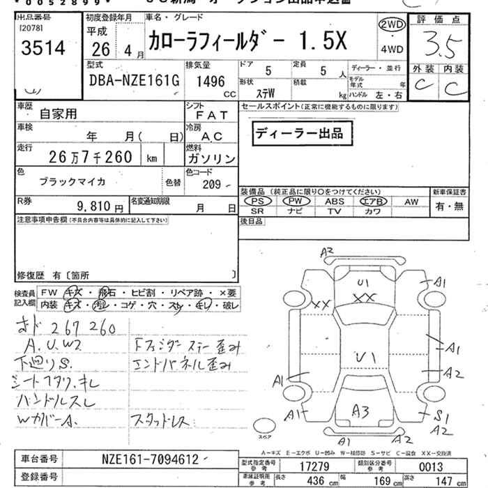 TOYOTA COROLLA FIELDER - лот 3514