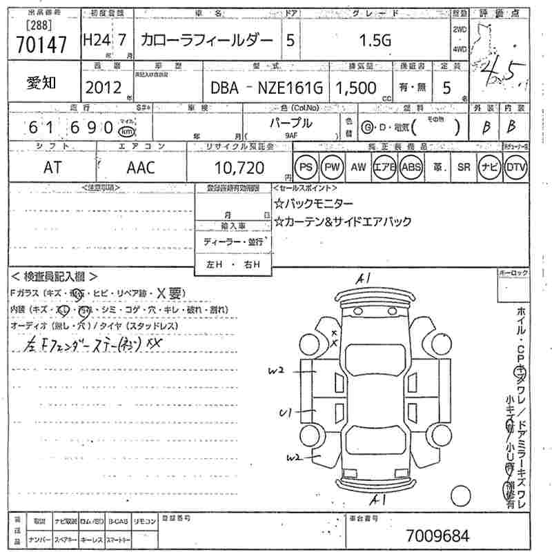 TOYOTA COROLLA FIELDER - лот 70147