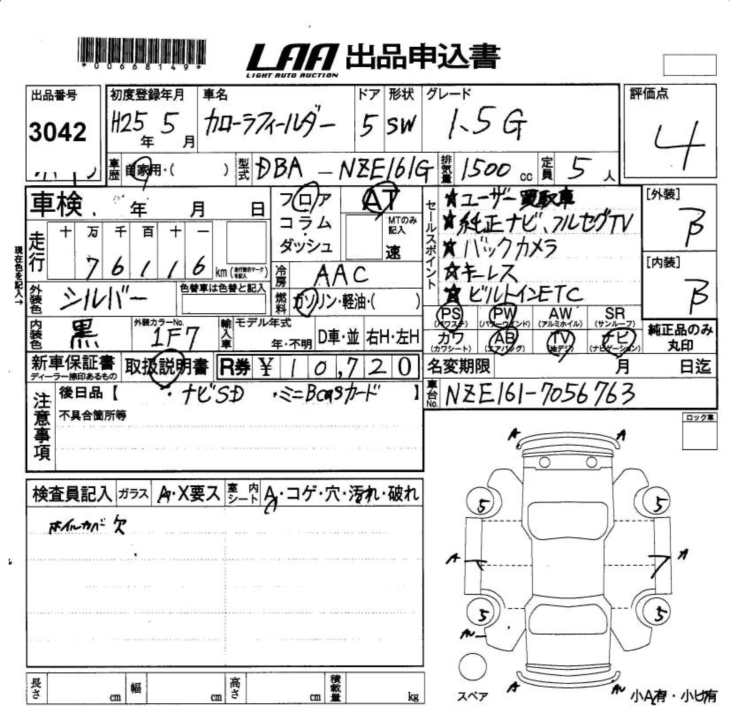 TOYOTA COROLLA FIELDER - лот 3042