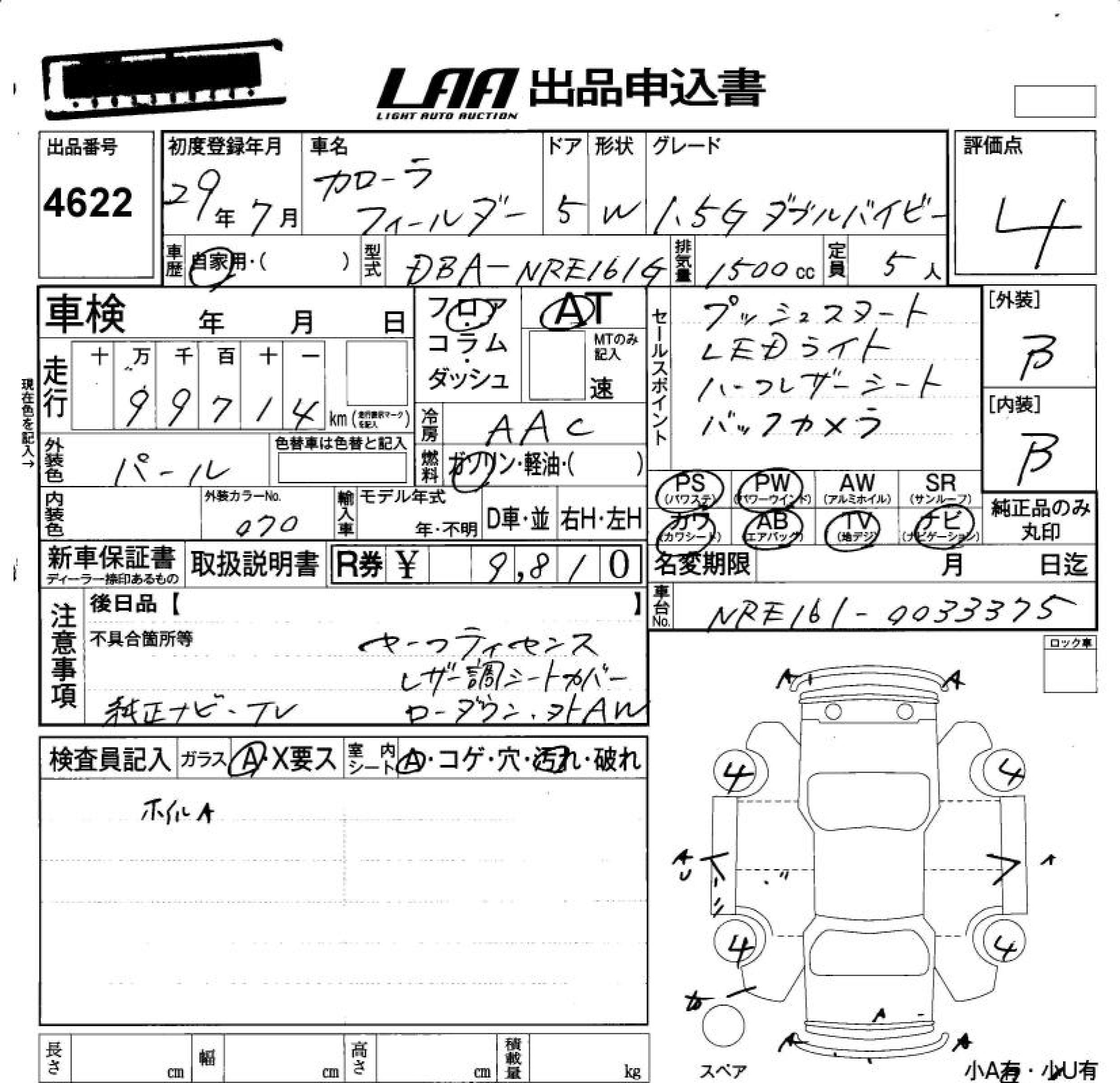 TOYOTA COROLLA FIELDER - лот 4622