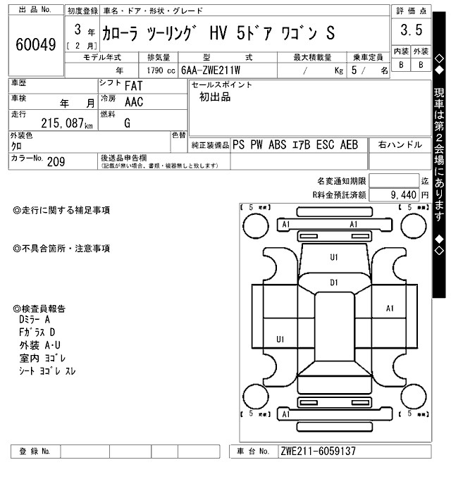 TOYOTA COROLLA WAGON - лот 60049