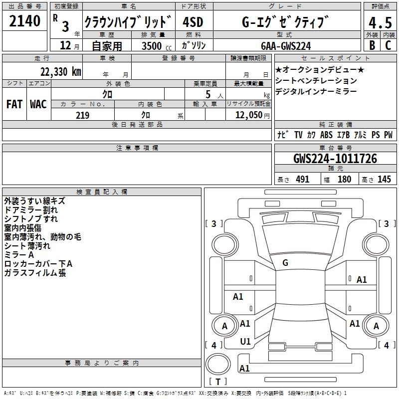 TOYOTA CROWN HYBRID - лот 2140