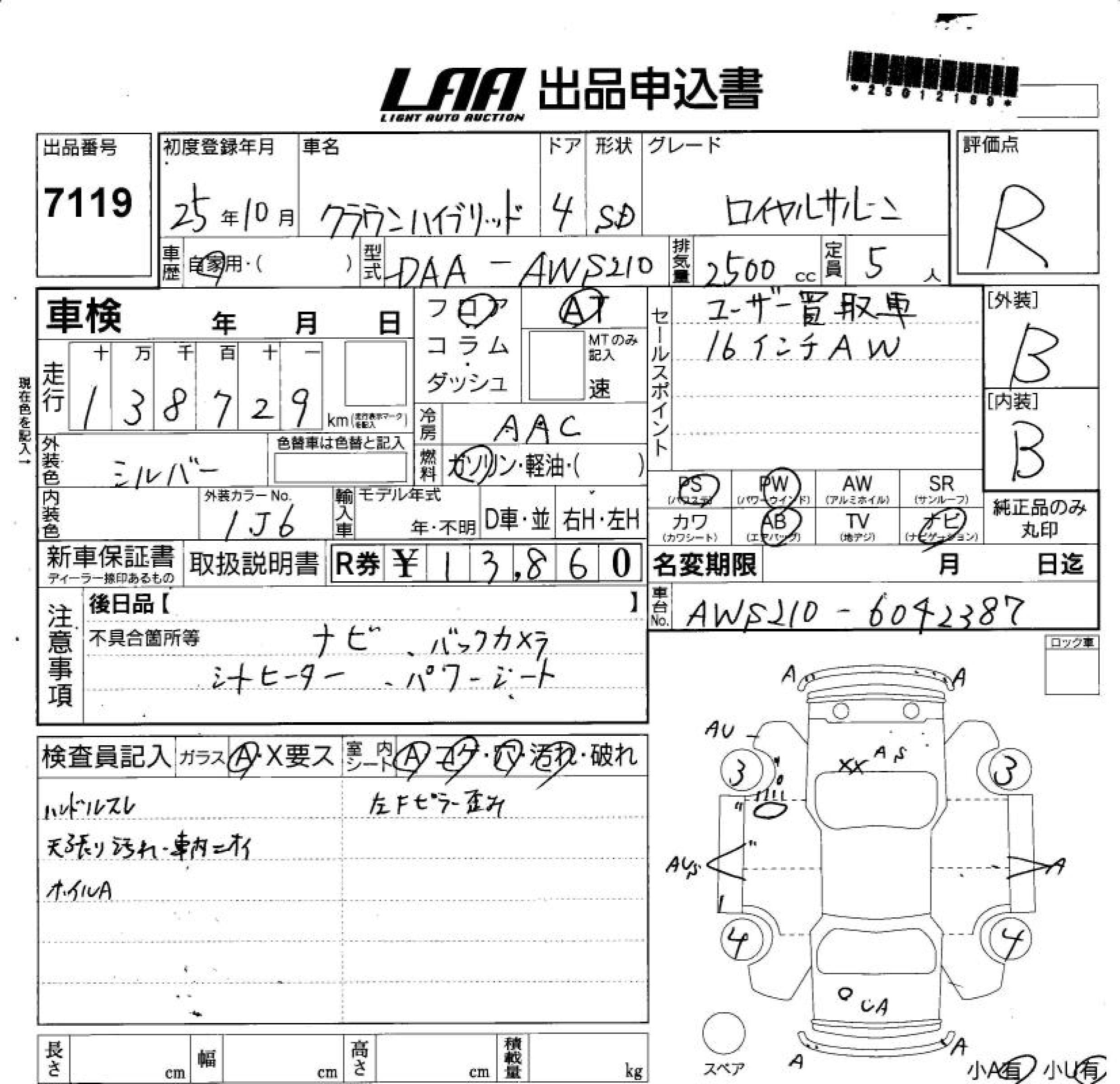 TOYOTA CROWN HYBRID ROYAL SALOON - лот 7119