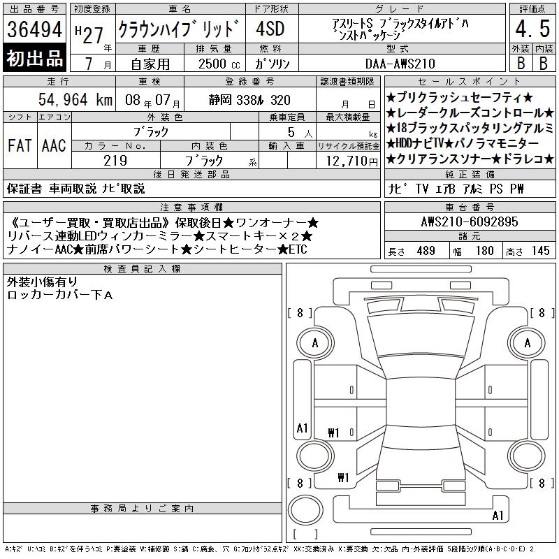 TOYOTA CROWN HYBRID ATHLETE S BLACK STYLE ADOP - лот 36494
