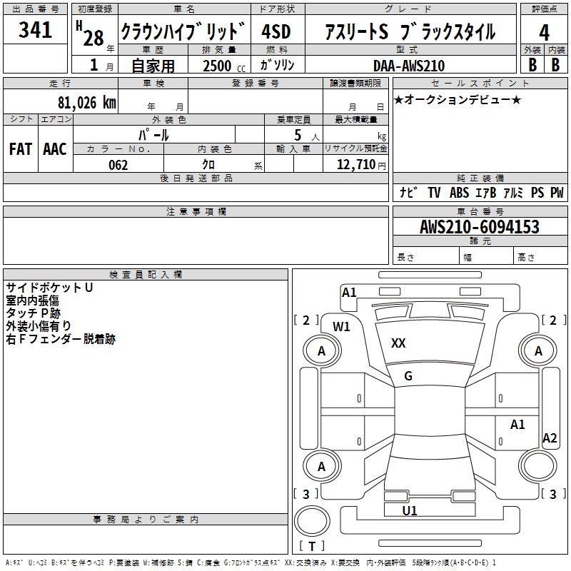 TOYOTA CROWN HYBRID ATHLETE S BLACK STYLE - лот 341