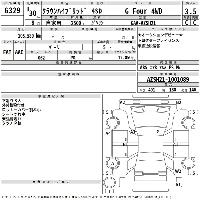 TOYOTA CROWN HYBRID G Four 4WD - лот 6329