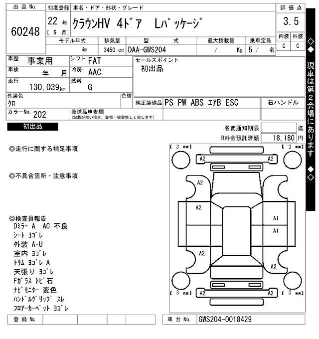 TOYOTA CROWN HYBRID L PACKAGE - лот 60248