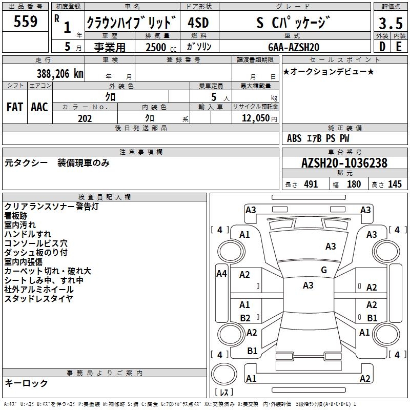 TOYOTA CROWN HYBRID S C PACKAGE - лот 559