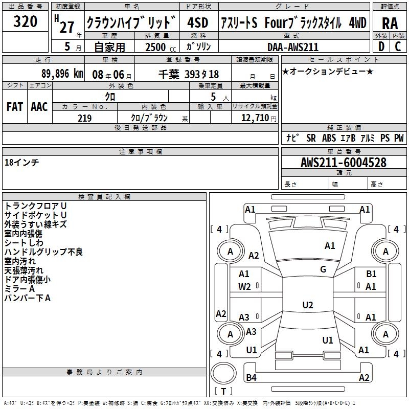 TOYOTA CROWN HYBRID ATHLETE S FOUR BLACK 4WD - лот 320