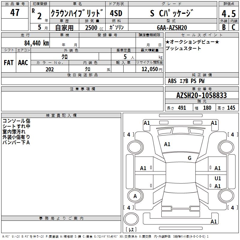 TOYOTA CROWN HYBRID S C PACKAGE - лот 47