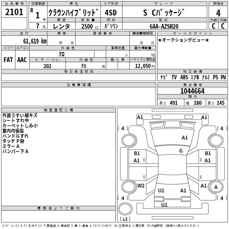 TOYOTA CROWN HYBRID S C PACKAGE - лот 2101