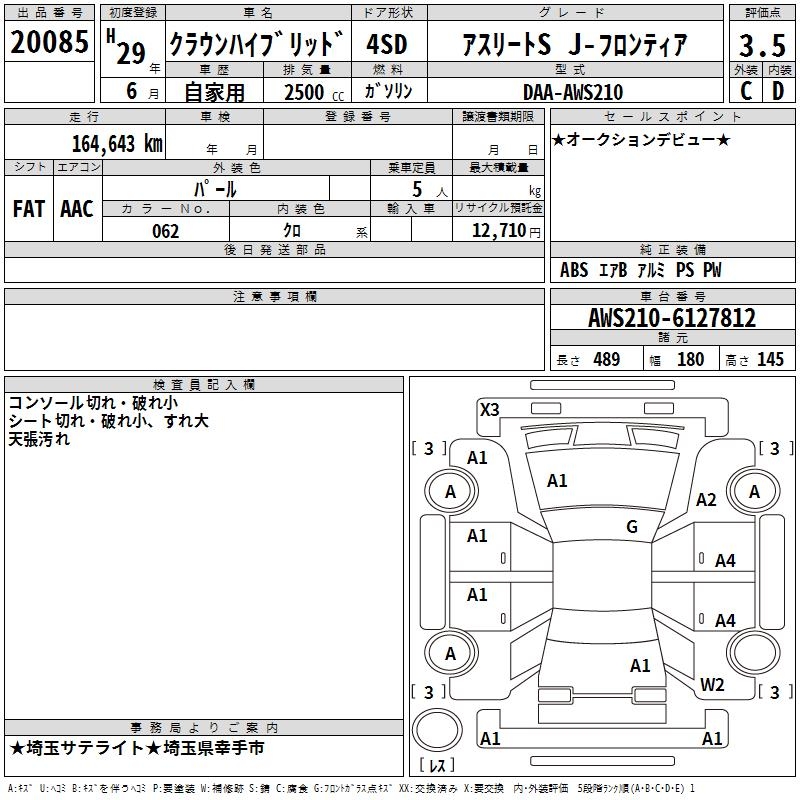 TOYOTA CROWN HYBRID ATHLETE S J- FRONTIER - лот 20085