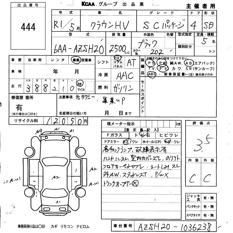 TOYOTA CROWN HYBRID S C PACKAGE - лот 444