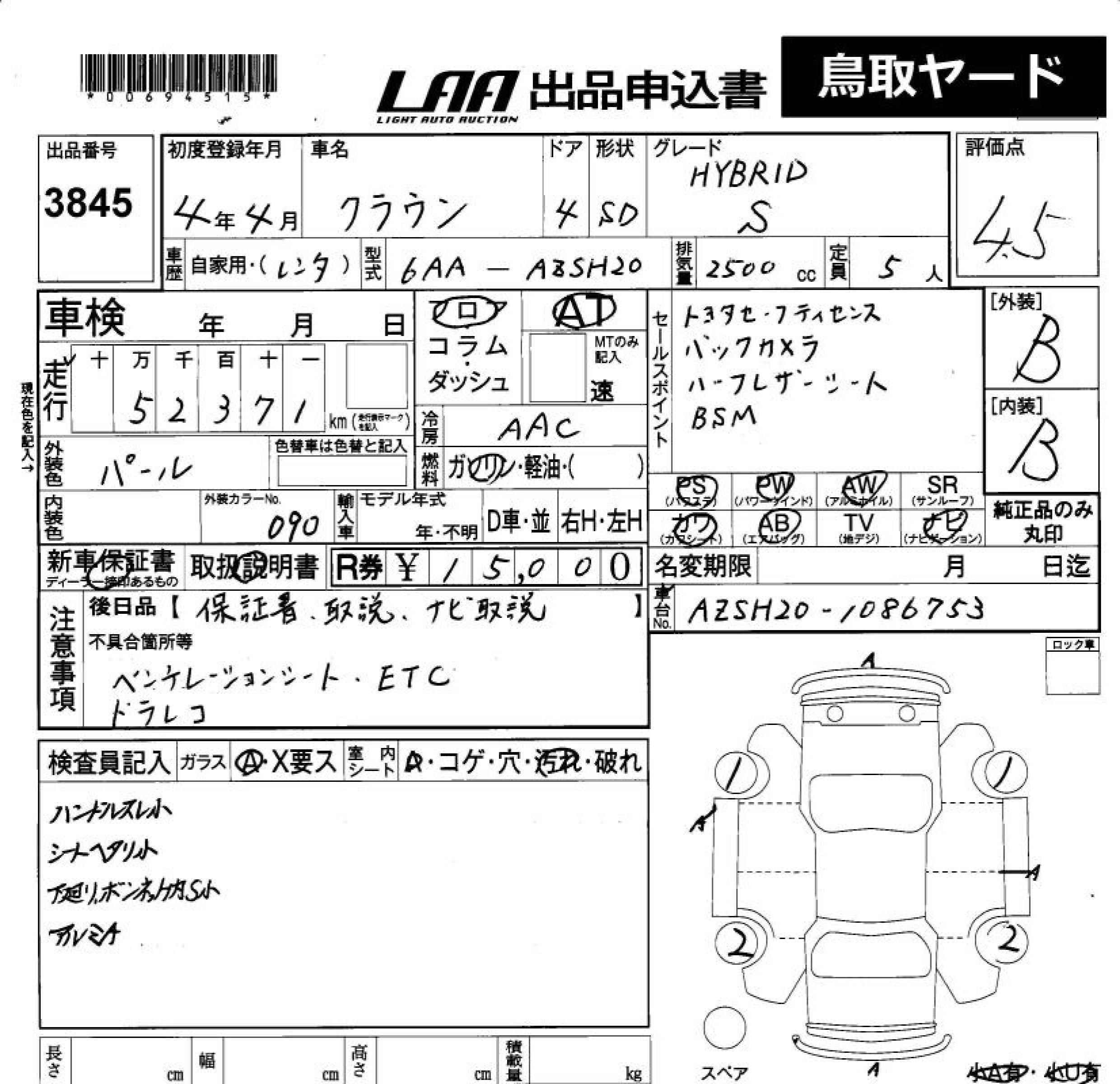 TOYOTA CROWN HYBRID S - лот 3845
