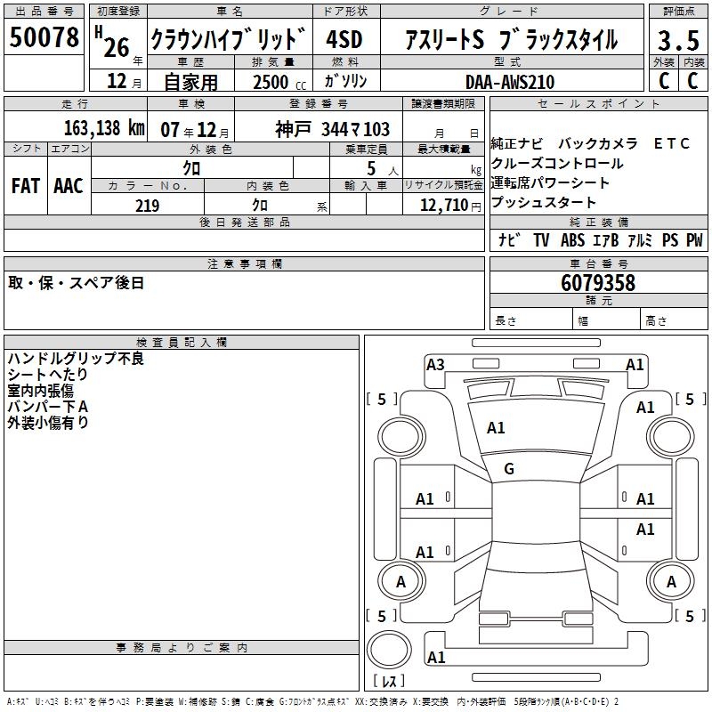 TOYOTA CROWN HYBRID ATHLETE S BLACK STYLE - лот 50078