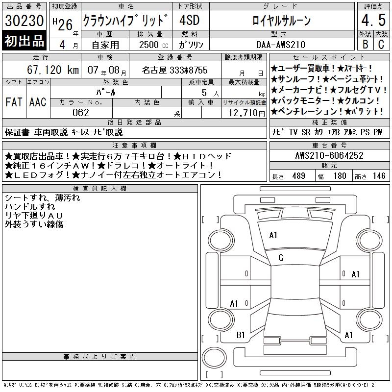 TOYOTA CROWN HYBRID ROYAL SALOON - лот 30230
