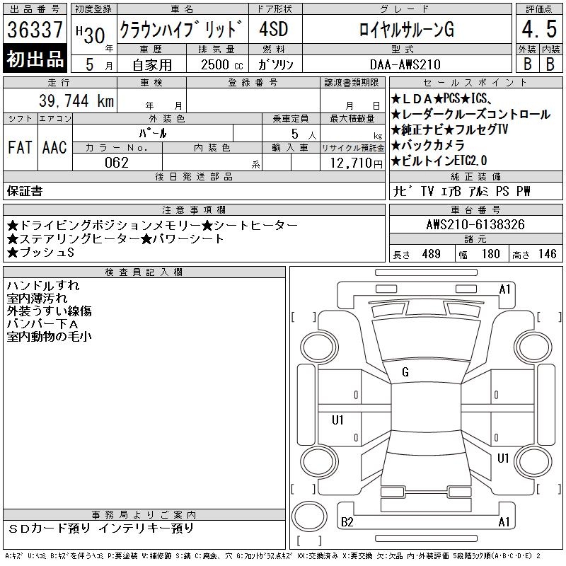 TOYOTA CROWN HYBRID ROYAL SALOON G - лот 36337