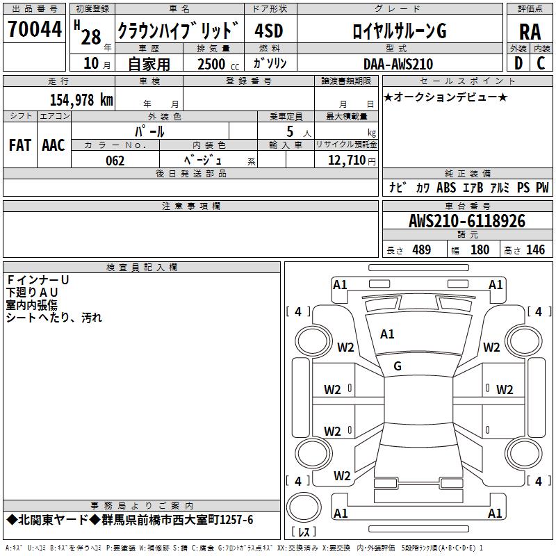 TOYOTA CROWN HYBRID ROYAL SALOON G - лот 70044