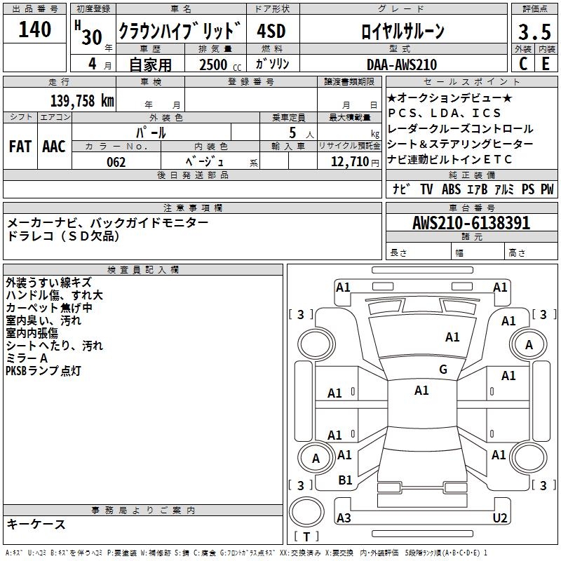 TOYOTA CROWN HYBRID ROYAL SALOON - лот 140