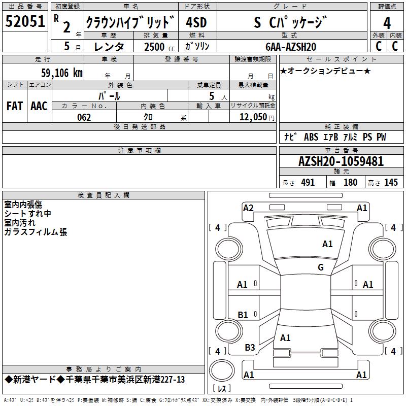 TOYOTA CROWN HYBRID S C PACKAGE - лот 52051