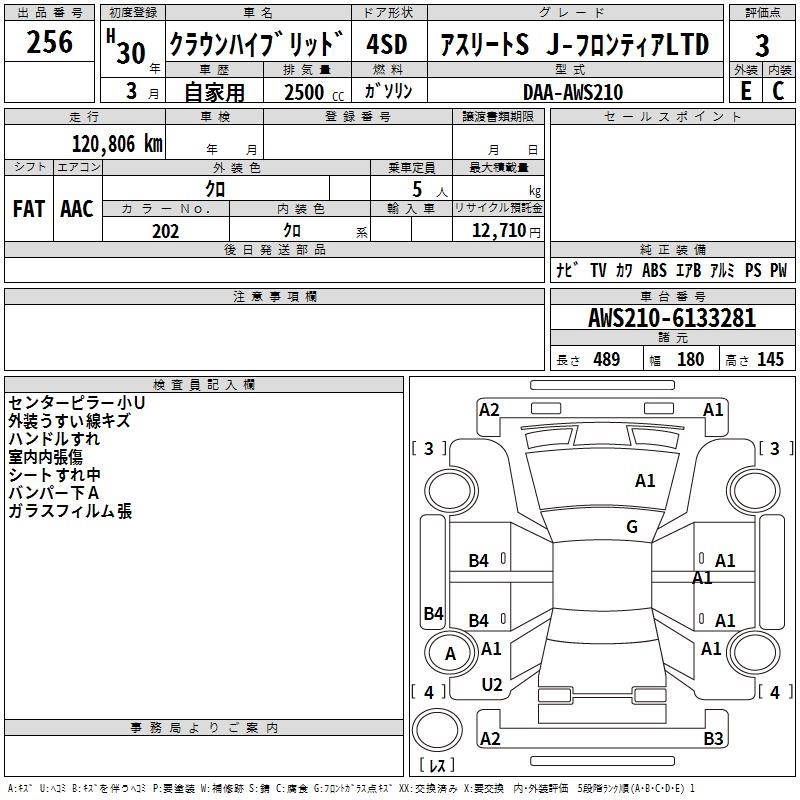 TOYOTA CROWN HYBRID ATHLETE S J- FRONTIER LTD - лот 256