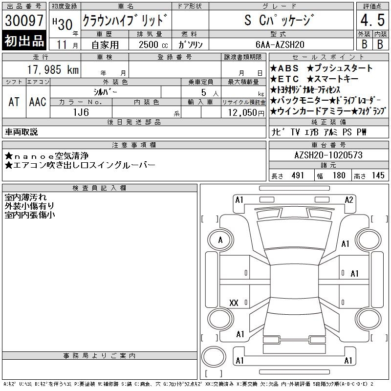 TOYOTA CROWN HYBRID S C PACKAGE - лот 30097