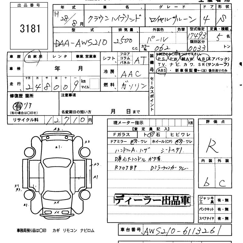 TOYOTA CROWN HYBRID ROYAL SALOON - лот 3181