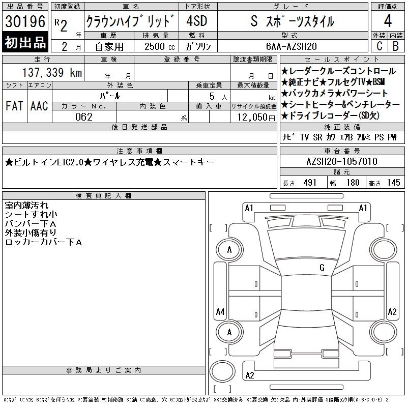 TOYOTA CROWN HYBRID S SPORT STYLE - лот 30196