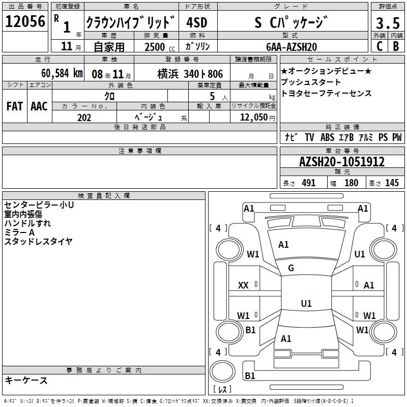 TOYOTA CROWN HYBRID S C PACKAGE - лот 12056