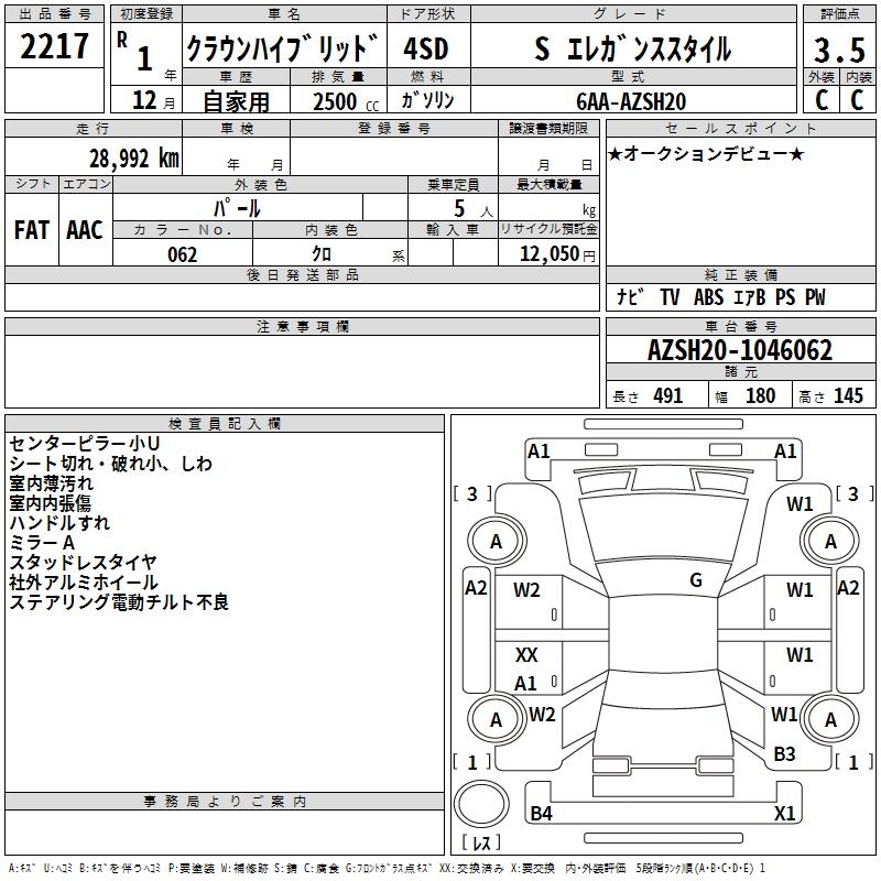 TOYOTA CROWN HYBRID S ELEGANCE STYLE - лот 2217