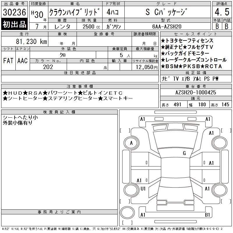 TOYOTA CROWN HYBRID S C PACKAGE - лот 30236